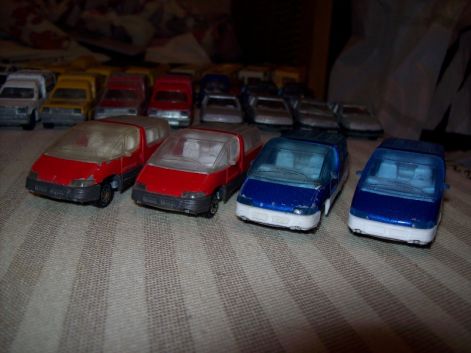 Ford Escort XR3:Mind a sárga és mind a piros BUMSZLI kerekesek voltak.A ságán láthato is hogy más kereke van mint a pirosnak.A piroson lévö kerék IS gyári mivel a barnán olyan van.Az nem lett cserélve.Viszont a Bumszli kerekeseket UTÁLOM igy cseréltem.A barnának sajnos hiányzik a csomagtarto ajtaja egyébként Ö volt az elsö Escortom.