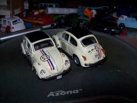 Hát eme járgánynál gondban voltam hogy hova is rakjam mivel Ritkának is mondhato már amennyire hogy nekem már kettő van belőle bár egyiket a bátyámnak vettem.Viszont a Cararama képtárba nem akartam rakni mert akkor elveszik a töbi között meg lesz még más filmes járgányom is.Igaz nincs sok.Az is majd IDE kerül nem pedig a Majorette képtárba.Scofield mostmár bizonyára sejti mely autokrol van szo:)Igyhát lássuk a kis szépségeket.Nagyon aranyos ám van egy kis hibája.Az első képen láthato az eredeti verzio miszerint is az 53as rajtszám pont középen helyezkedik el valamint a piros-fehér-kék csik a mocitető (velünk szemben) jobb oldalán ezzel szemben a Cararama játékauto változaton a bal oldalon van mind a rajtszám mind a csikok.Ez azért gáz hogyha már kihoznak ilyen autot nem ártana rá figyelni.Én mindenesetre imádom és az egyik kedvencem.A Kicsi Kocsi filmek is részei voltak gyerekkoromnak (a Lindsay Lohan-es az már nem az egy trágya)és tulajdonképpen azota vagyok azon az elven hogy minden autonak lelke van.És nem csak a mondásra alapozom mindezt hanem a film megnézése után is igy éreztem.